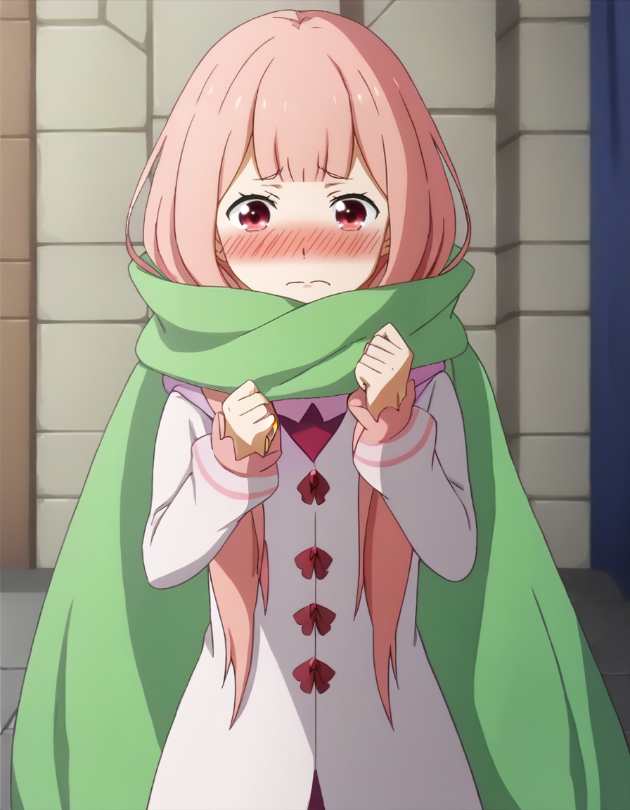 일상복을 표현하려면 녹색 스카프, 흰색 오버코트, 녹색 망토를 사용하세요.