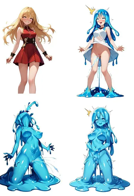 Slimefication/Slime Girl Transformation - Before and after transformation series