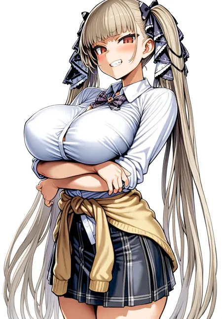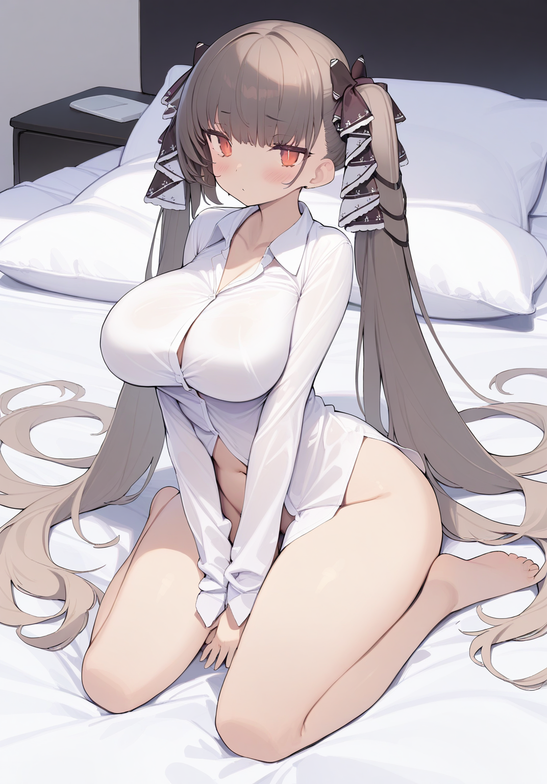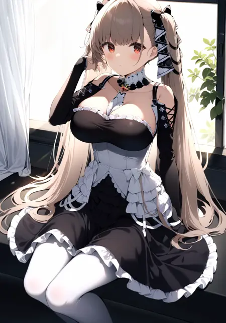原版(original):formidable_\(azur_lane\), long_hair, twintails,red eyes,frilled dress, two-tone dress,breasts, large breasts,