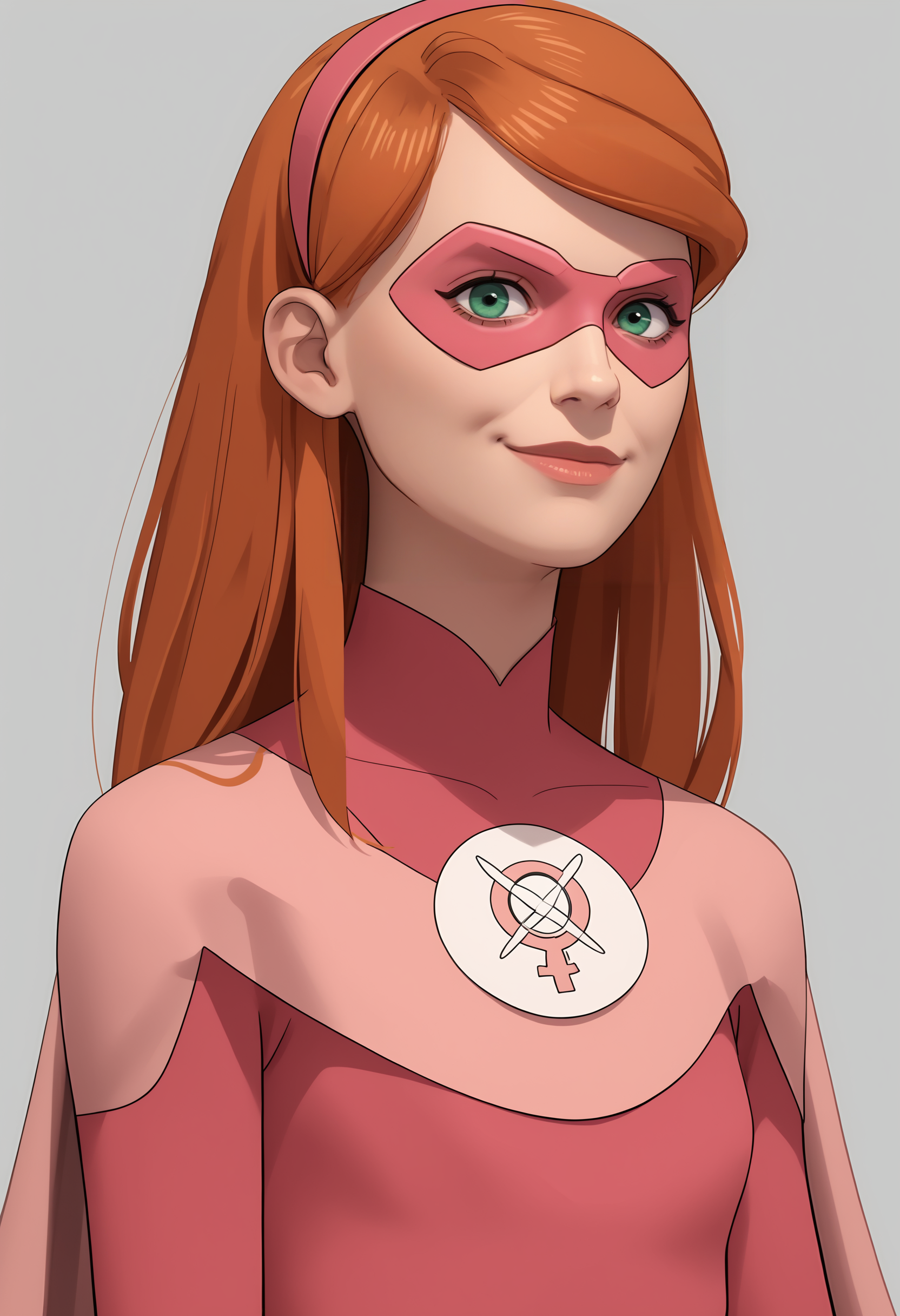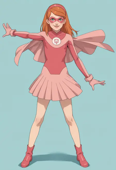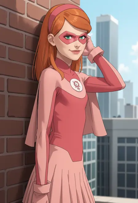 发带, 面具, 多米诺面具, 连体衣, 粉色连体衣, 超级英雄, 手套, 裙子, 斗篷, 小斗篷