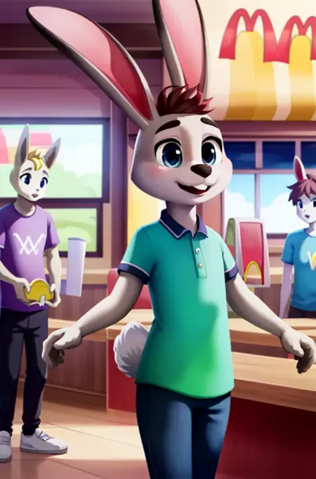 胸毛,龅牙,衬衫,裤子,兔子尾巴