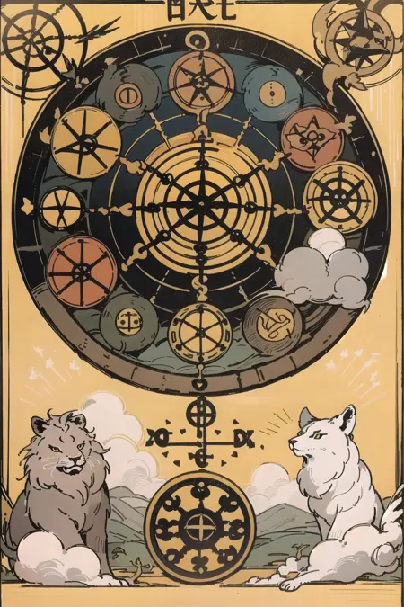 wheel of fortunespoked wheelsymbolswinged animalslionoxeagleangelsXI – Justice: