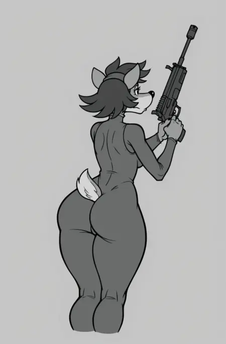 nu pogodi, volk, male anthro canine wolf furry character, pink briefs with bulge, posing at sea beach backgrownd, solo focus,