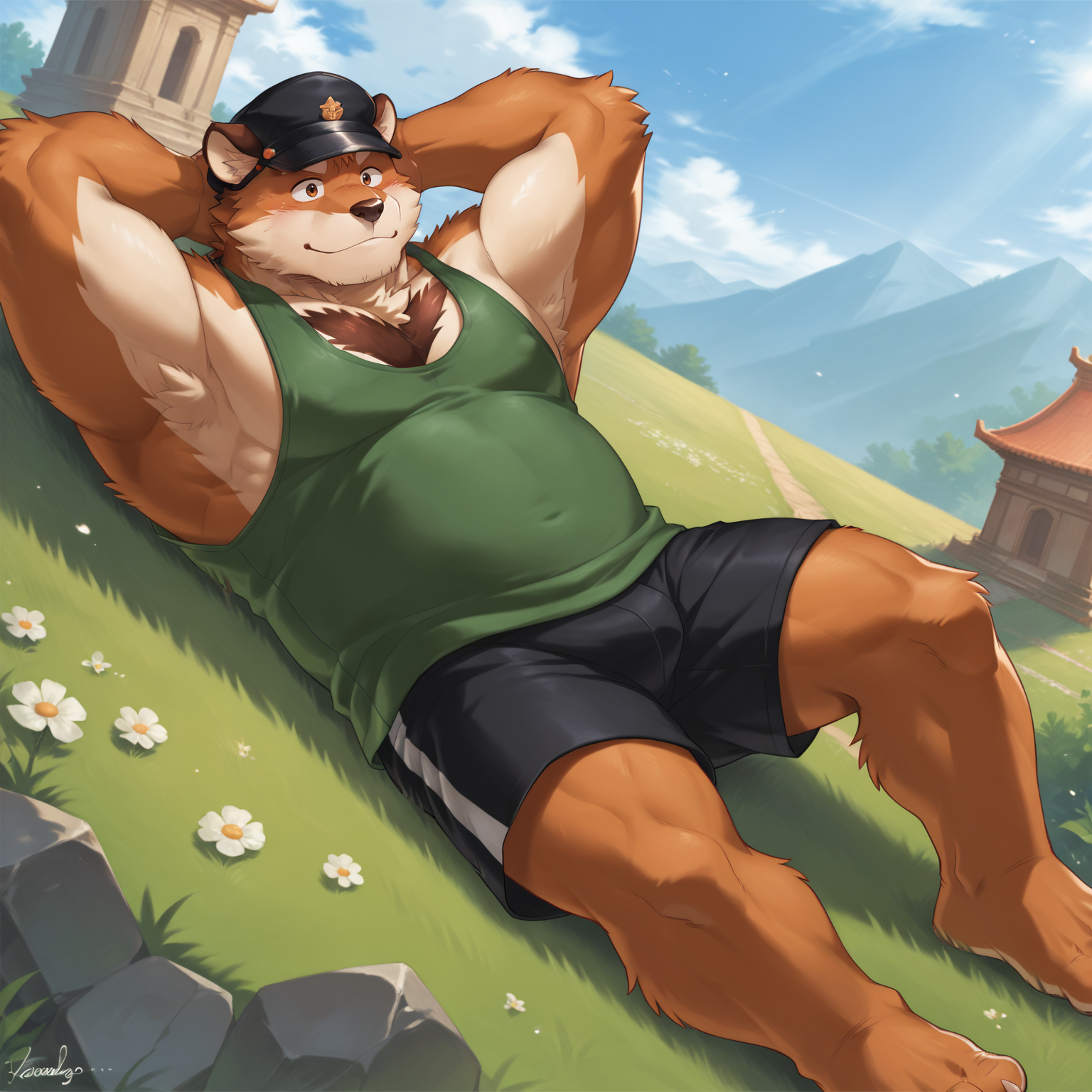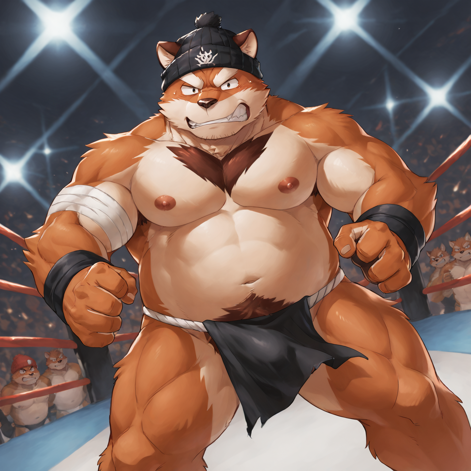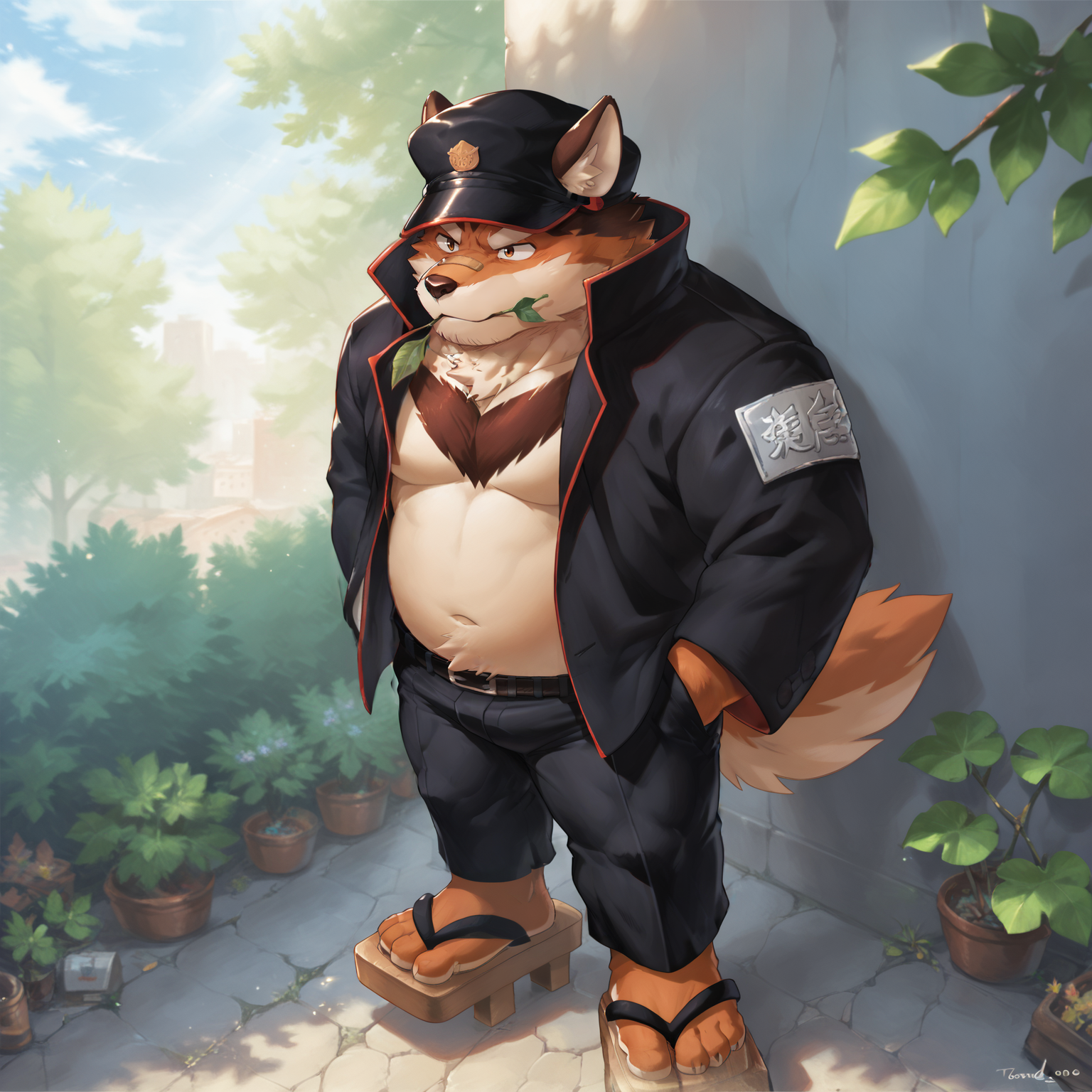 触发词: kotaro, crave_saga, orange fur, hat, jacket
