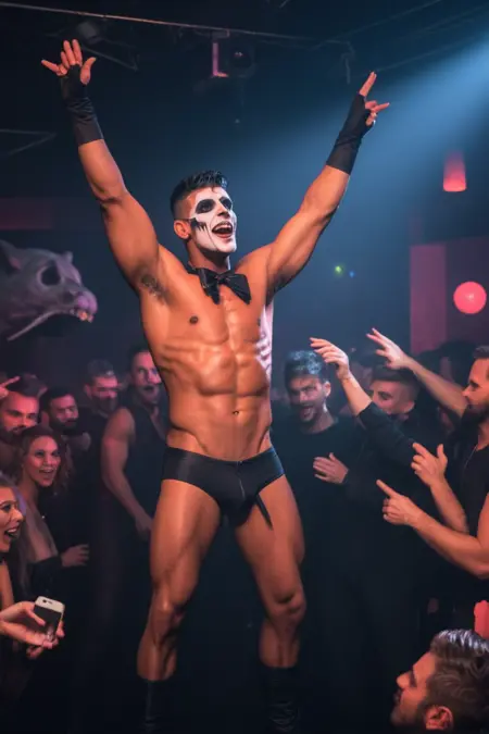 유용한 프롬프트: 남성 스트리퍼, 남성 스트리퍼들, 스트리핑, 옷 벗기기
