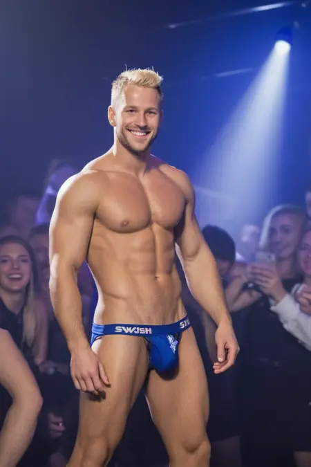 관객 앞에서 펼쳐지는 남성 스트립 쇼의 분위기를 포착하는 것을 목표로 합니다. 근육, 오일로 윤기 나는 몸체, 강렬한 조명, 퍼포머들의 미소를 기대하세요.