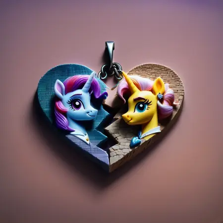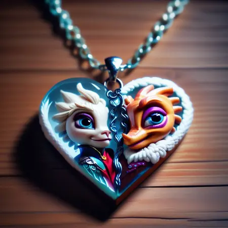 このモデルを使えば(理論上)、任意の2つの被写体を使って「壊れたハートのネックレス」を作成できます。左側と右側にそれぞれ1つずつです。プロンプトの指定は厳密なので、以下のガイドに従ってください。