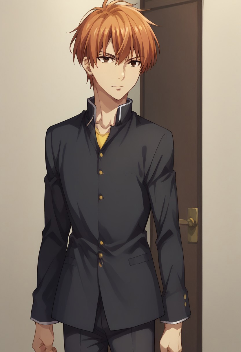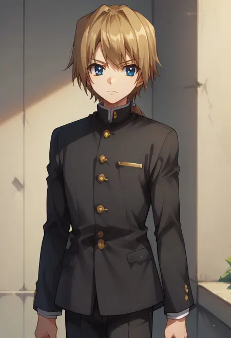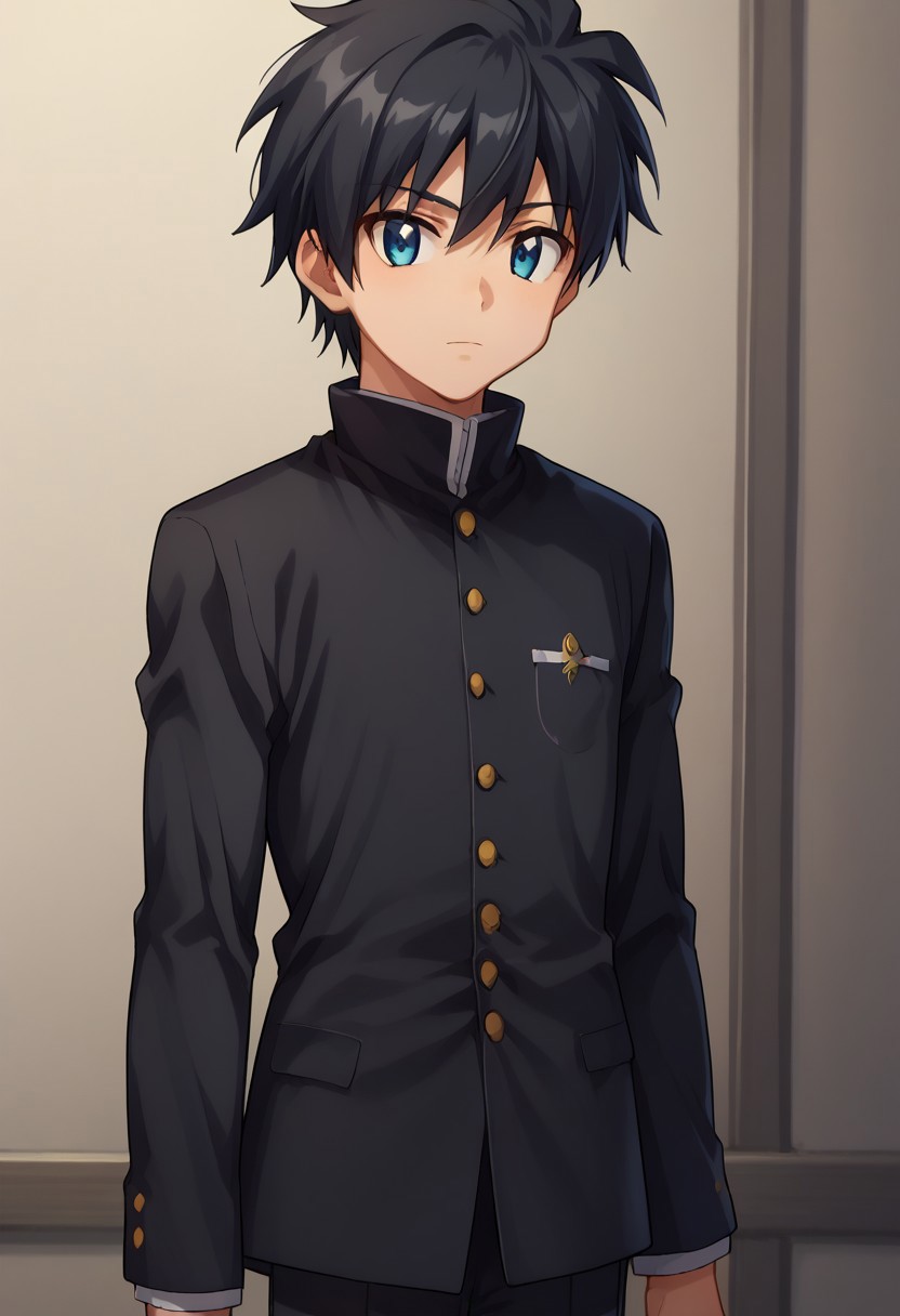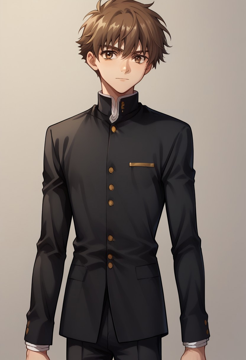 学校制服、黒い制服、長袖、ズボン、黒いズボン、ボタン