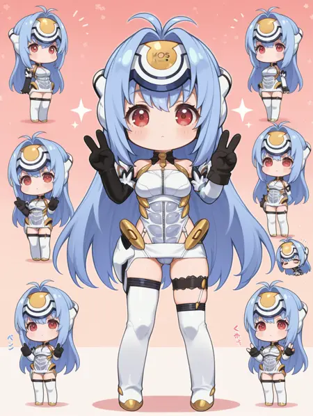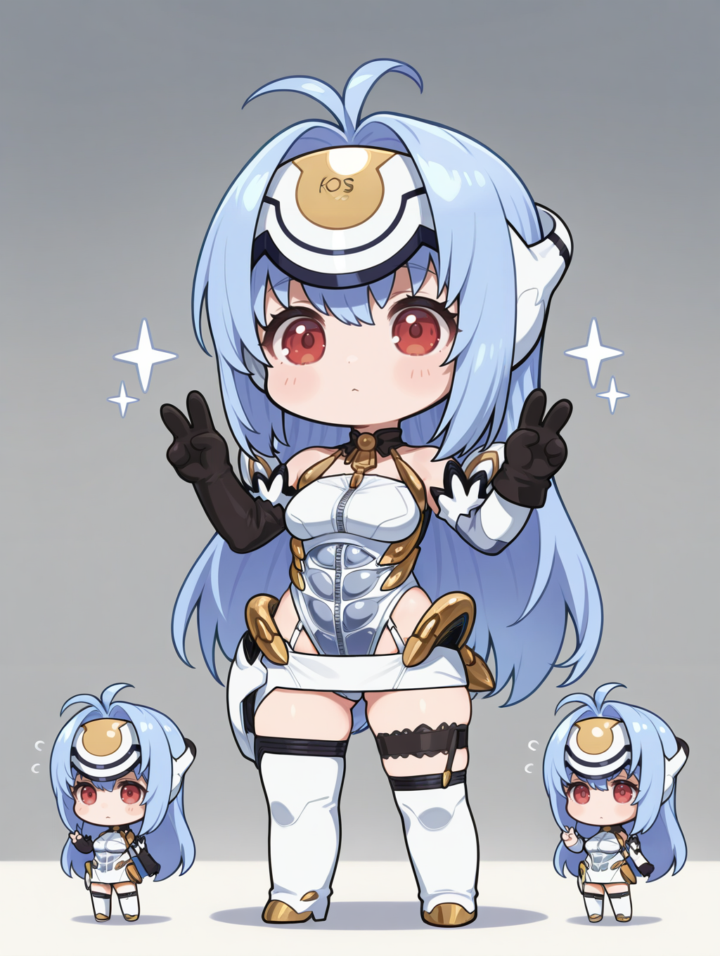 标签(服装):白色额饰、白色大腿靴、机器人、白色肘套、黑色肘套、白色迷你裙、白色高腿紧身衣