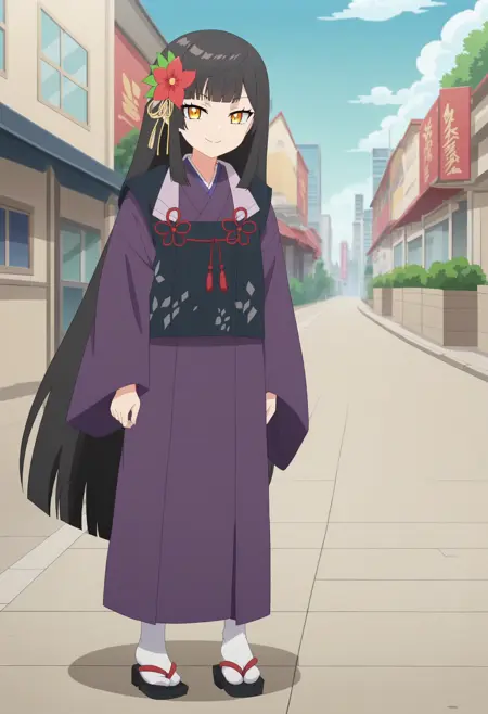 Another model i was sitting on wasnt sure if i should release or not. only problem ive seem to have with it which is why i didnt release is that if i prompt socks it would sometimes shorten the kimono length. I am think adding the prompt "long kimono" may fix it though, haven't tested it though. In any case i figured since no one has done this character yet whats the harm right?