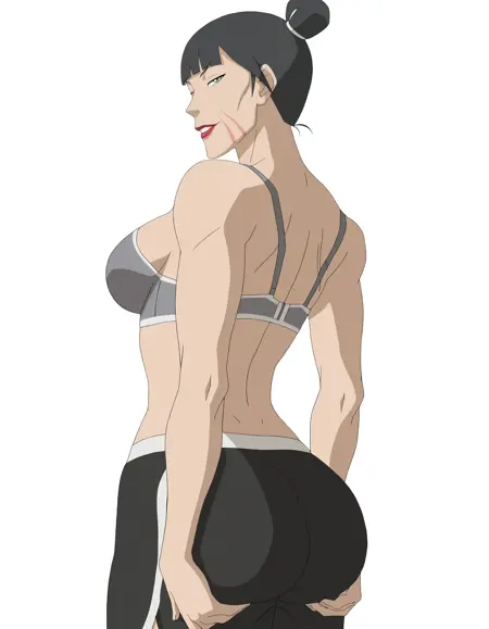 linbeifong, 1girl, mature female, scar on cheek, medium hair, parted hair