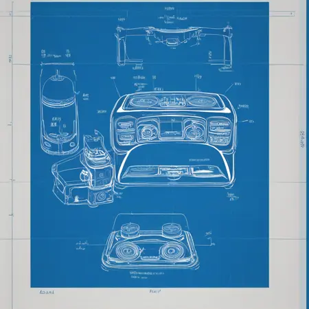 옵션: 기술 도면, 흰색 선, 초안, 인간 없음, 파란 톤