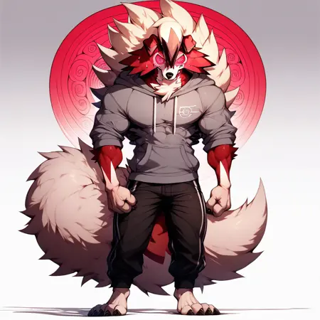 サンプル画像で筋肉や尾が不自然に大きく見えるのはご容赦ください。データセットでより大きな尾と明確な筋肉を実現するのが難しかったため、無理やり目立つキーワードを使用しました。サンプル画像にコピーする際に、そのキーワードを削除し忘れたのです。