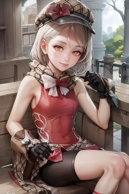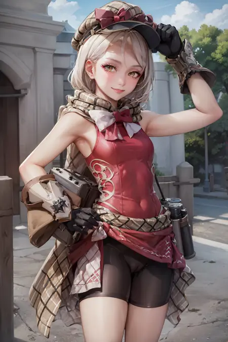 기본 의상: 모자, 긴팔 없음, 골반 커튼, 자전거 바지, 장갑