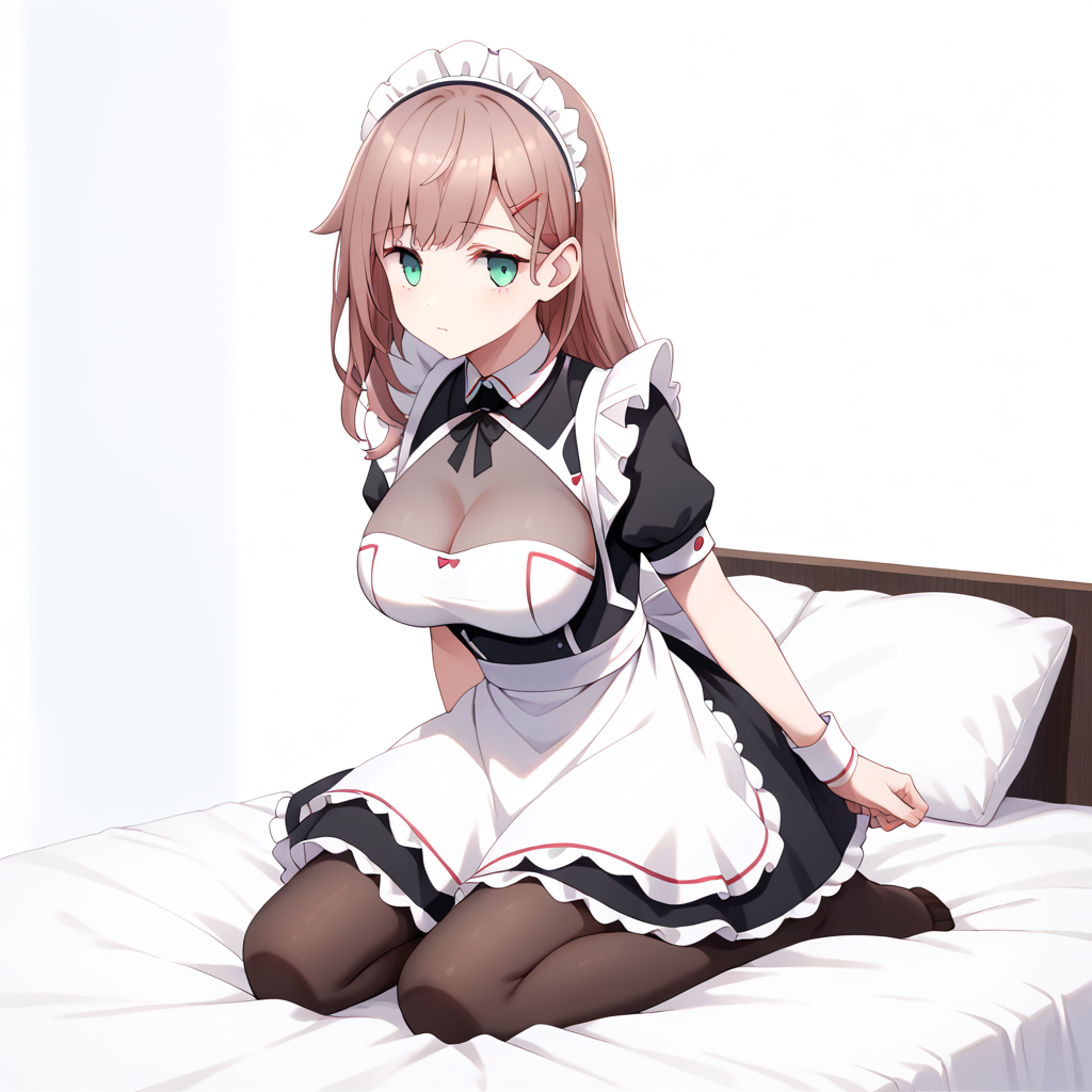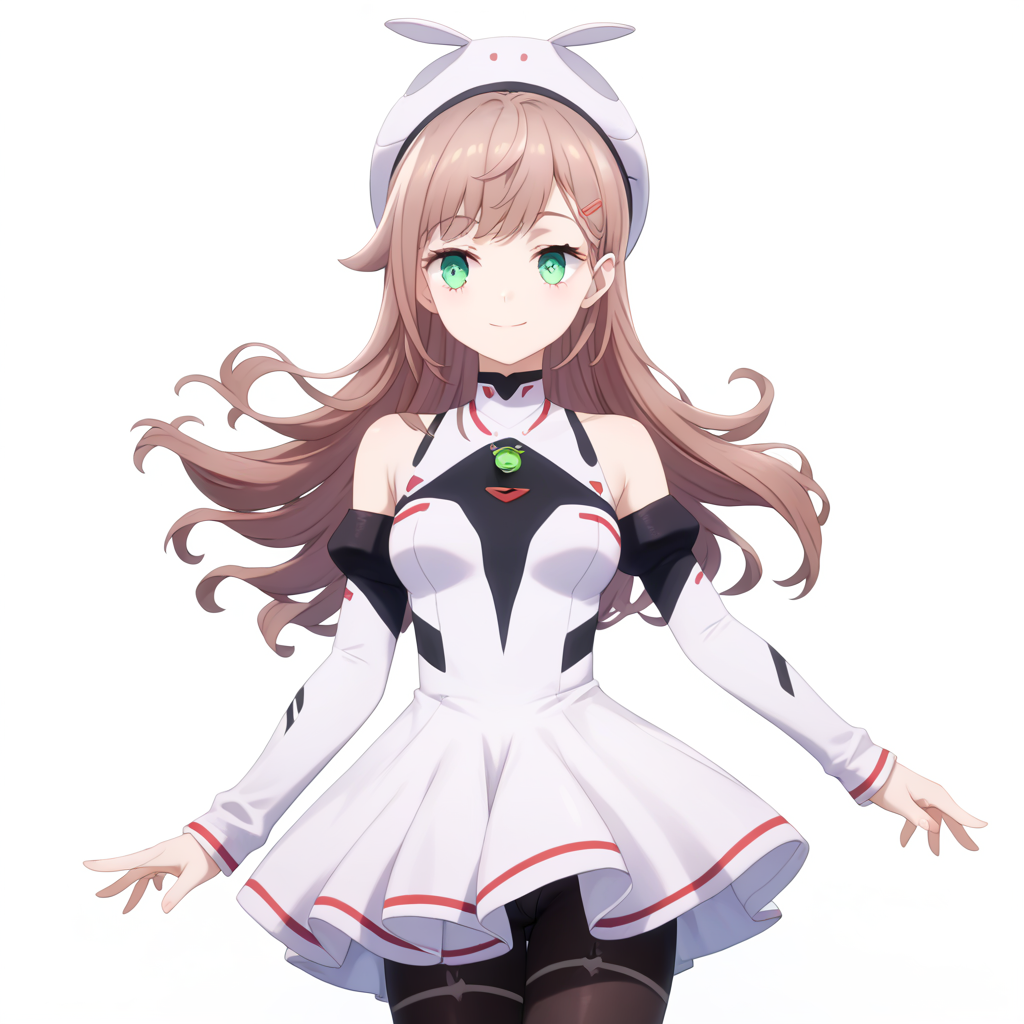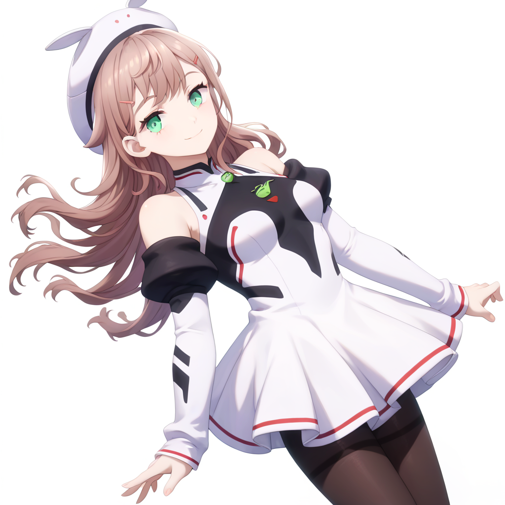 merrow, hat, hairclip, bare shoulders, long sleeves, white dress, pantyhose
