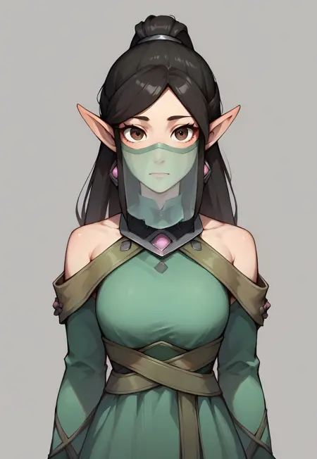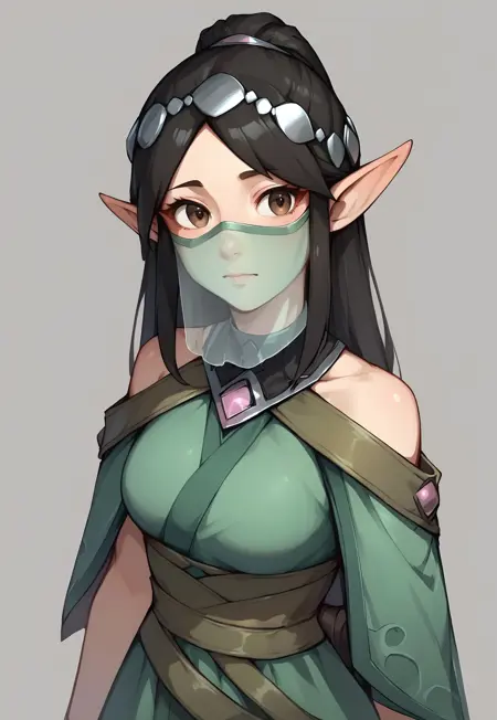 default_ying, 尖った耳、ベール、茶色い目、