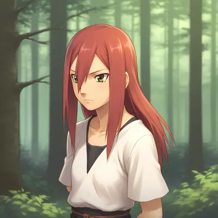 1girl, solo, tayuya, red hair, long hair, brown eyes,