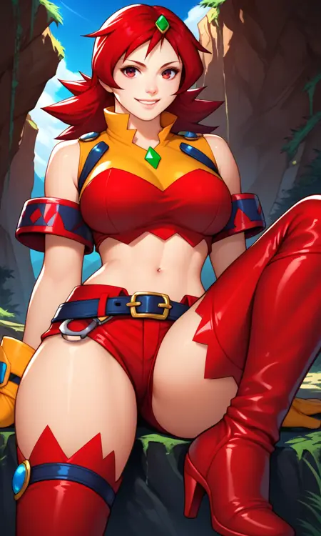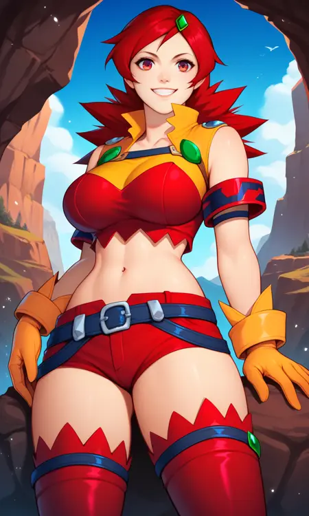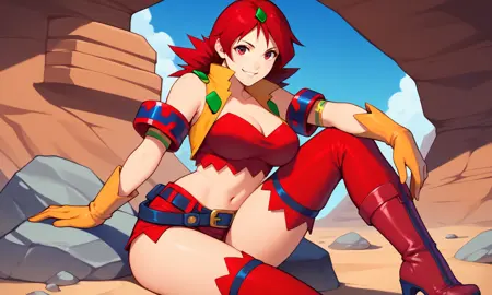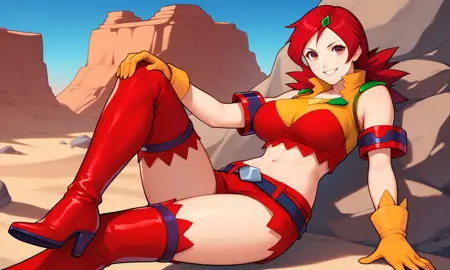 | 训练词汇 | score_9, score_8_up, score_7_up, score_6_up, score_5_up, score_4_up, Naomi Fluegel, red hair, spiky hair, purple eyes, yellow gloves, red thighhighs, red short shorts, thighs, green hair ornament, arm bands, exposed shoulders, red high heeled boots, midriff, navel, zettai ryouiki已复制! |