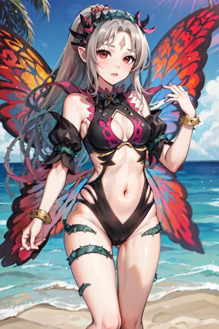 • 前額の模様、へそ、ワンピース水着、へその切り抜き、服の切り抜き、翼、とげ