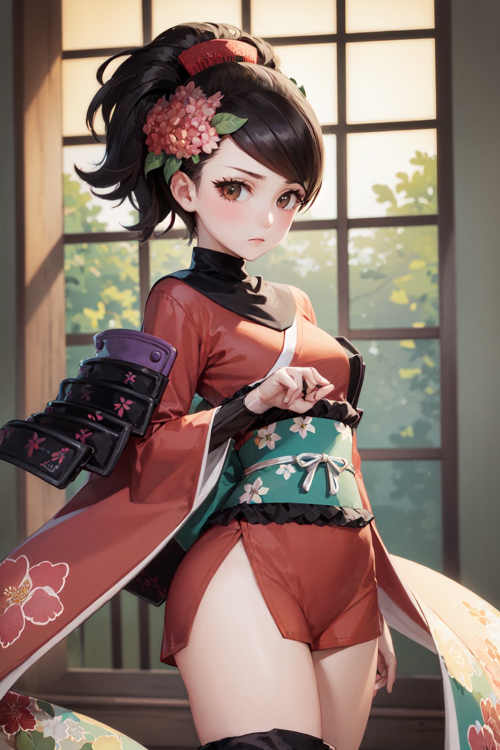 默认服装: 头发花饰, 和服, 盔甲, 和式服装, 长筒袜