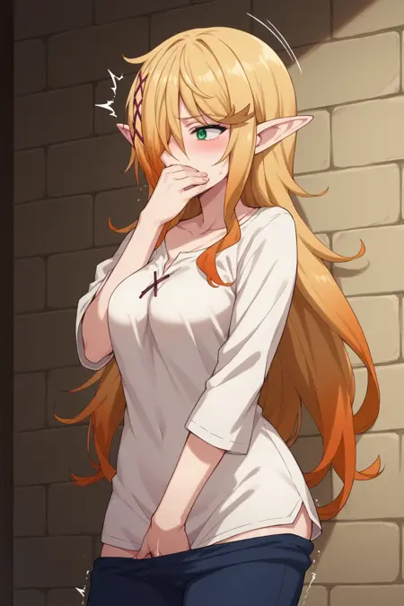 - zel-mtf,头饰,绿眼,金发,精灵,长发,头饰,头发遮住一只眼睛,尖耳朵