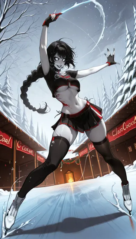 퍼니 태그: Bayn, 비대칭 하의, 검은 허벅지 양말, 아랫가슴 노출, 크롭탑, 치마, 치어리더,