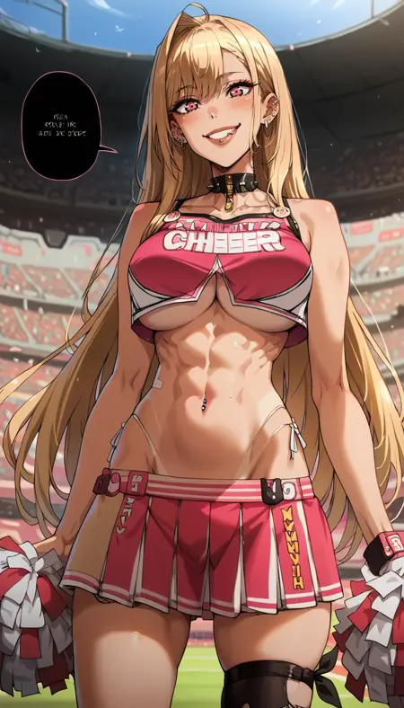 Tags for pony: Bayn, Asymmetrical legwear, Black thighhighs, underboob, Crop top, skirt, cheerleader,