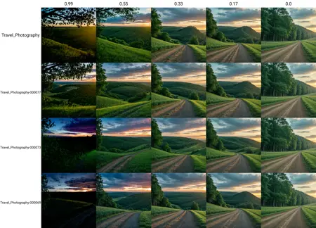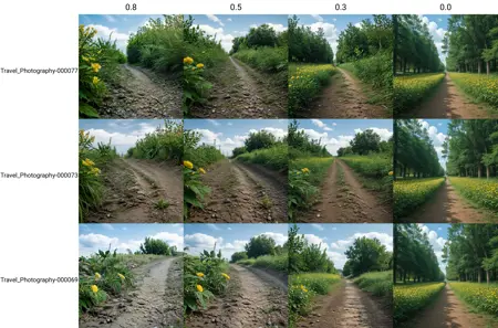 This LoRa was made from HighRes travel photographs shoot with professional lens with shallow depth of field. No particular theme. Just a random moody photos from travels (nature, streets, animals, people, etc.).
