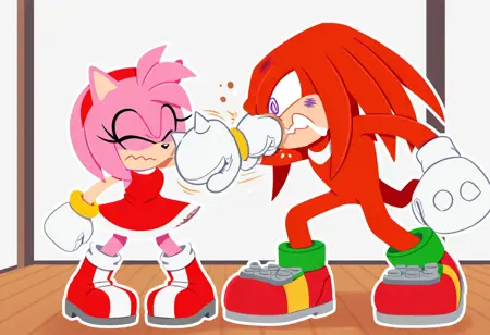 刺猬Knuckles提示词: long hair, white spiked gloves