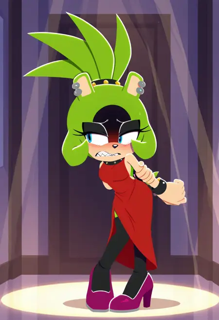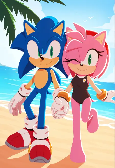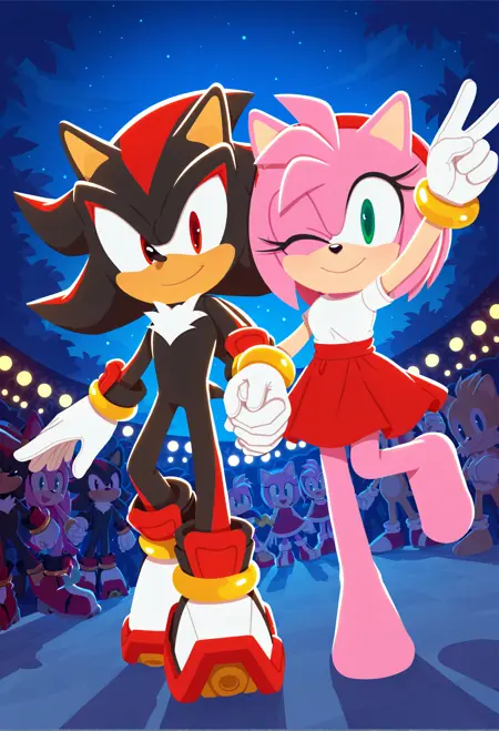 仅当模型未能将其风格应用到生成图像时,才使用提示词 "flat color"。此新版模型包含一种替代画风,可通过提示词 "colored pencil (medium)" 激活。如需生成符合原作风格的 Sonic 角色,请使用提示词 "sonic (series)"。
