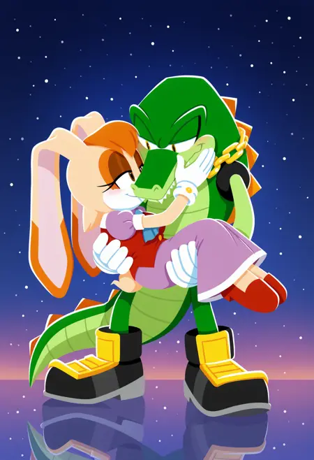ONLY use the prompt "flat color" if the model fails to apply its style to the resulting image. This newer model includes an alternative art style that can be triggered using the prompt "colored pencil (medium)". Use the prompt "sonic (series)" if you're wanting to do on-model Sonic characters.
