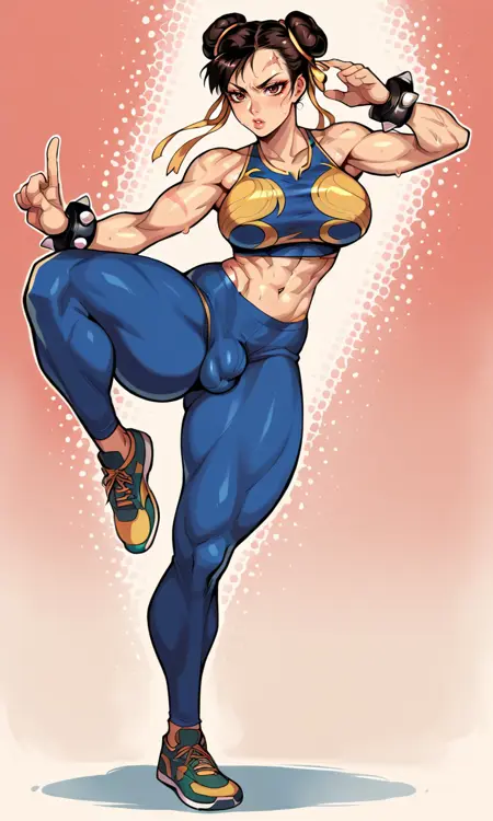 Chun Liスタイルの空手ポーズにあなたのキャラクターを配置するためのLoRA。クレーンスタンスや立ち膝割りのポーズに非常に適しており、「エネルギーオーラ」やジャンクと組み合わせると楽しいです。