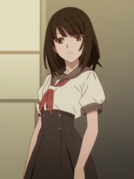 sengoku nadeko, medium hair, brown hair, brown eyes,