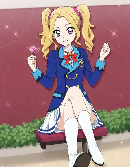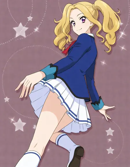 | 训练词汇 | DAICHI_nono,mole under eye, blonde hair, twintails已复制! starlight academy school uniform,blue jacket, white pleated skirt,white boots, 已复制! skirt, frills, navel, idol, jewelry, pink scrunchi,necklace, midriff, ribbon, choker, lolita fashion, , corset, black thighhighs已复制! |