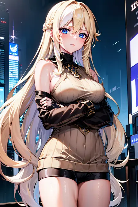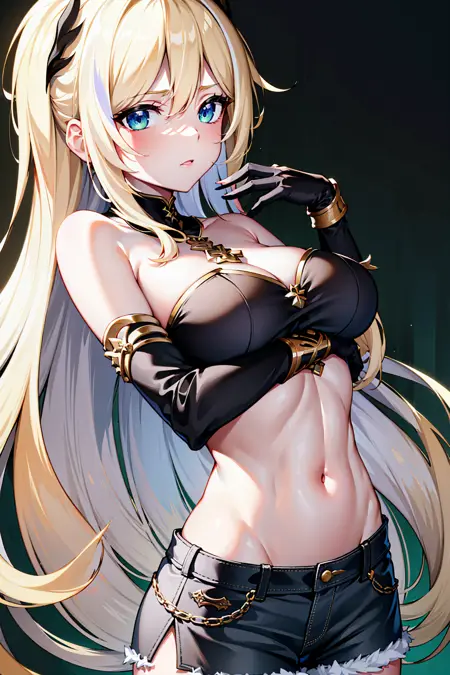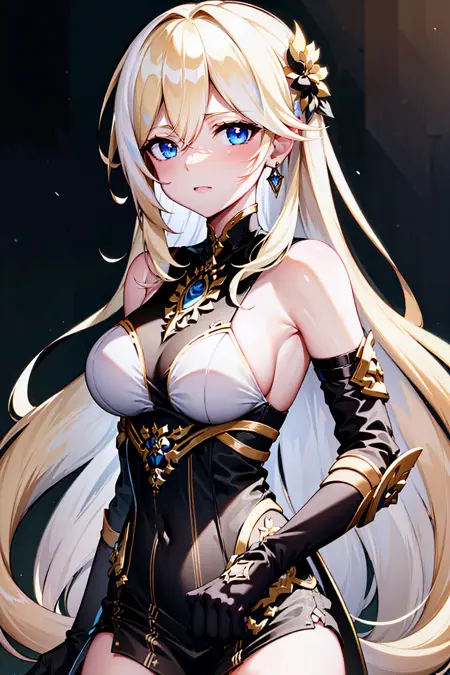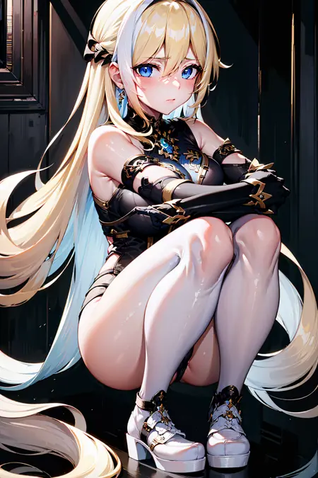 Brand new training data, the first attempt to integrate two clothing styles into one lora. A portion of clothing tags were preserved during training to ensure more stable outputs and easier outfit changes. The outcome is truly surprising. Recommended weight: 0.8. To alter appearance, just retain "daie white"/"daie black" and hair-related prompts, and reduce the weight to around 0.6. If hair color also changes during outfit swaps, simply add "blonde hair". For the black appearance, including "armored boots" greatly increases the chance of generating a full-body image—adding "cowboy shot" won’t help, so remove "armored boots" instead. There’s also a chance other armored figures may appear; to address this, avoid having her stand stiffly (don’t use "standing"), and enrich the description with background, pose, or motion cues. The training data uses a pure black background, so background details are generally needed. The model also performs reasonably well on real human models. If you know how to layer LoRAs, you’ll achieve even better results.