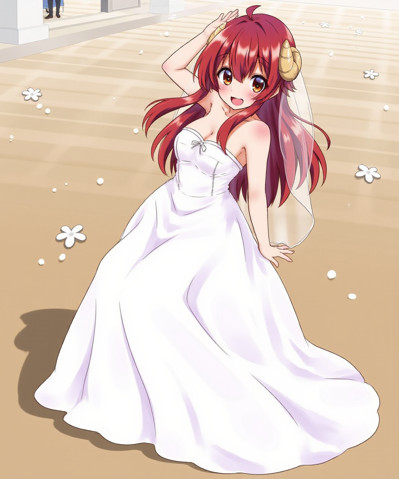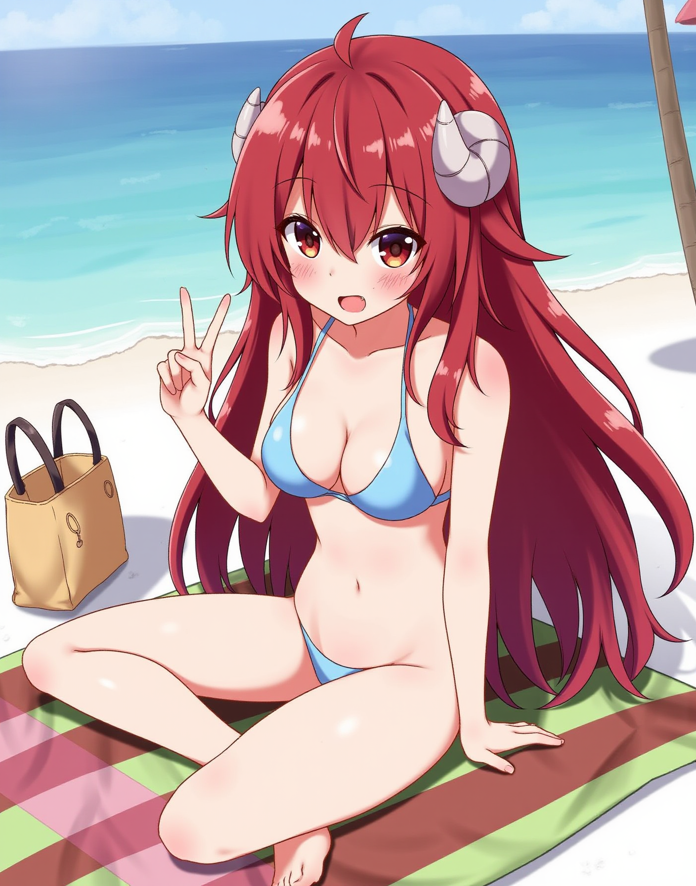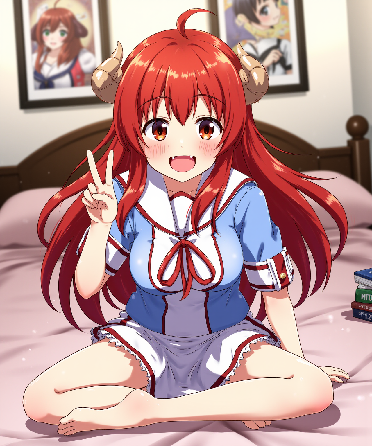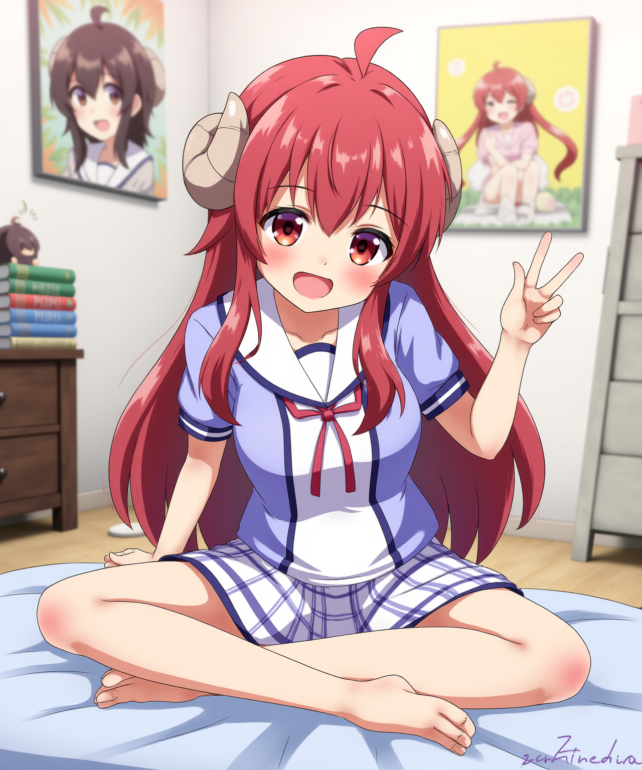Make sure to describe her roughly along with her name, red hair, red eyes, pleated skirt, red bow, etc tags or text descriptions both work.