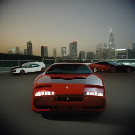 一个LoRA,用于生成跑车与美女场景, reminiscent 赛车游戏如《极品飞车》等的壁纸。基本构图为美女在跑车旁摆姿,夜间赛车场景。