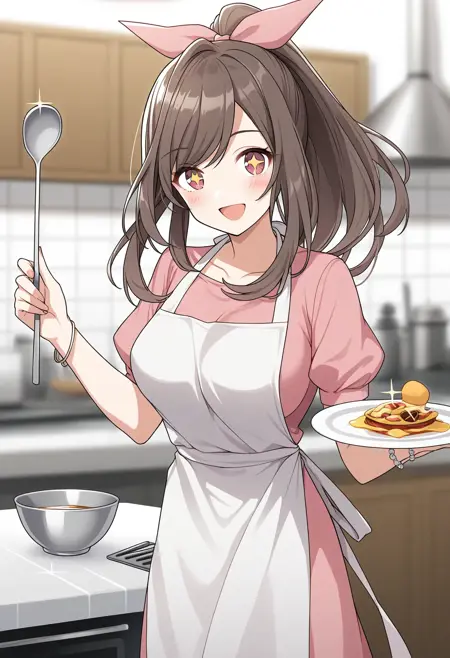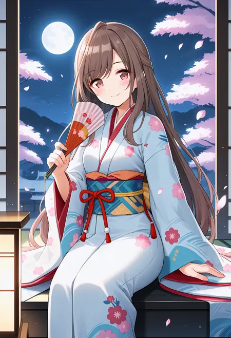 k_tsukioka, 1girl, brown hair, long hair, bangs, brown eyes, red eyes