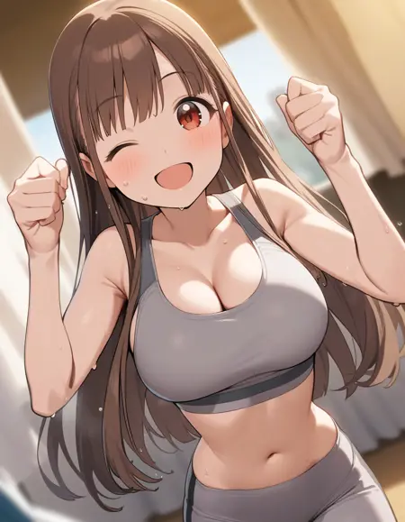 c_sonoda, 1girl, smile, red eyes, brown eyes, brown hair, long hair, bangs