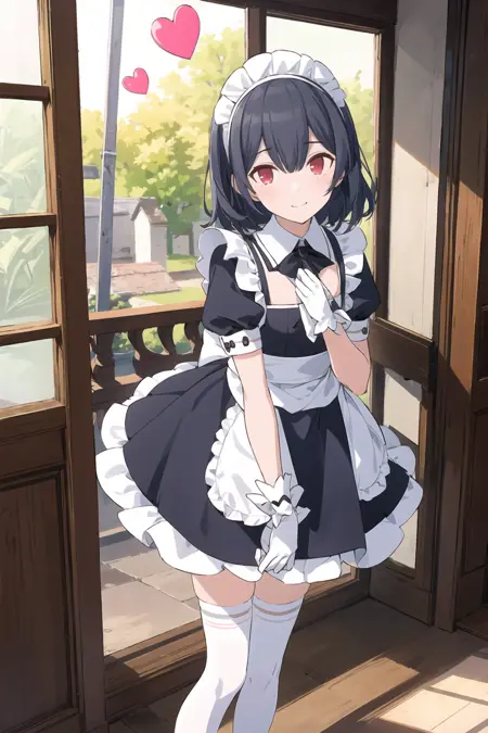 r_morino, 1girl, solo, red eyes, short hair, black hair, blue hair, bangs, hair between eyes,
