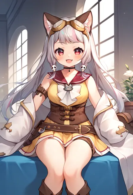 | Trained Words | ikikae_rururu, animal ears, grey hair, pink hair, long hair, goggles on head, red eyes, multicolored hair, dog ears, :3, fang, small breasts, hair ornament, chibiCopied! choker, white bow, white sode, yellow shirt,sleeves past wrists, sleeves past fingers, white coat, corset, belt, sleeveless, sailor collar, yellow skirt, yellow pleated skirt ,thigh strap, brown footwear,boots Copied! |