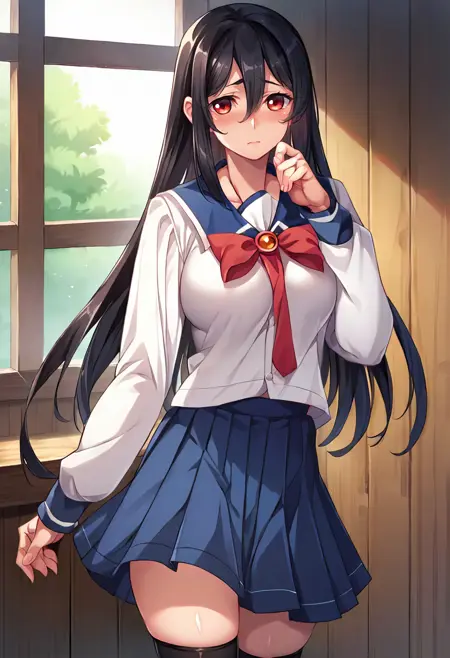 触发词: kur3, 长发, 黑发, 红眼, 大胸