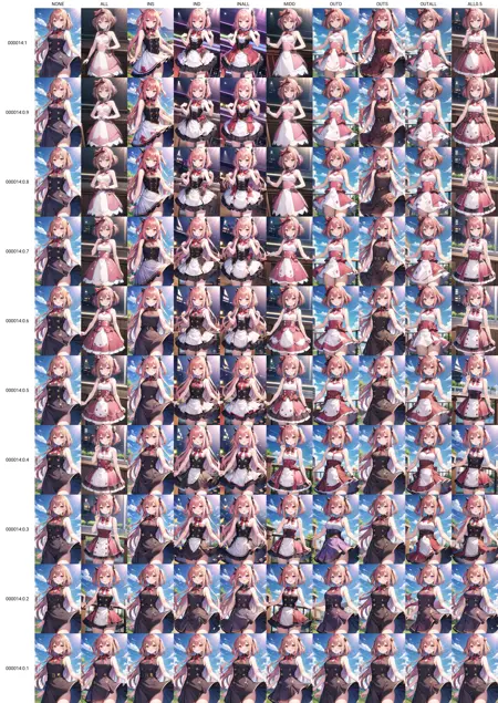 私はまた LoRA Block Weight プラグインも利用しています。上記の画像は、さまざまなパラメータでの結果を示しています。プラグインのインストールを望まない場合、「ALL」の部分だけを参照してください。