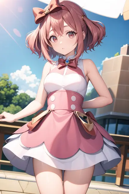 "red eyes, bow," を追加すると、問題を軽減できることがあります。