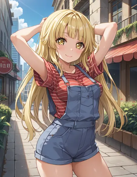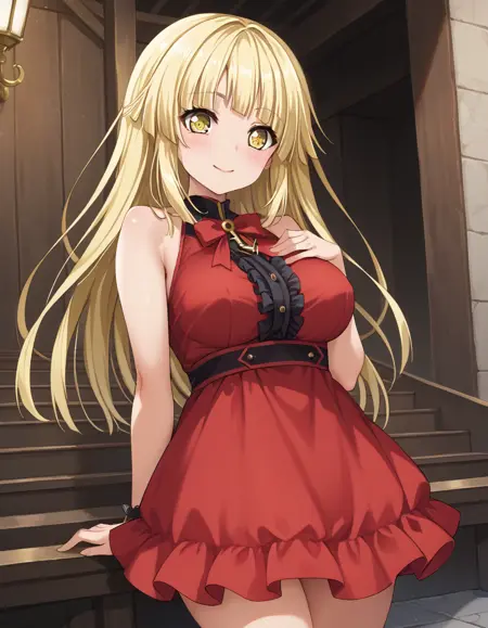 Tsurumaki Kokoro、長い髪、金髪、黄色い目