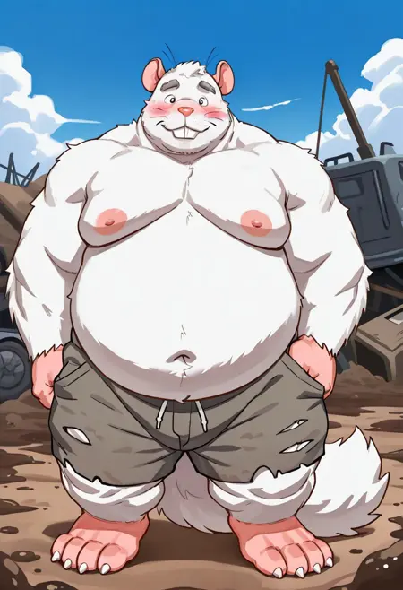 Scrap, Rodent, ratkin, white fur, belly, chubby