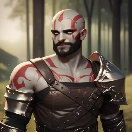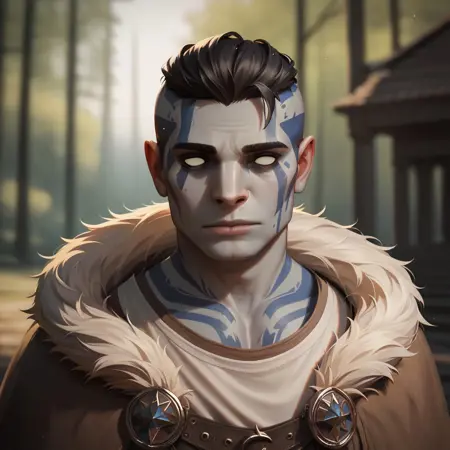 예시 프롬프트: goliath, empty eyes, gray skin, stone skin, body tattoo, face tattoo, 1male, blue eyes, green cape
