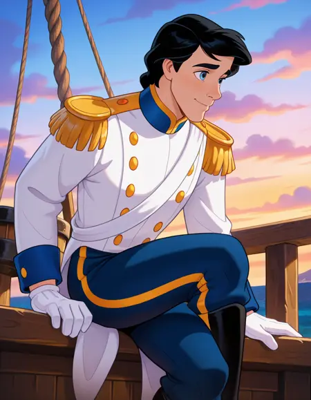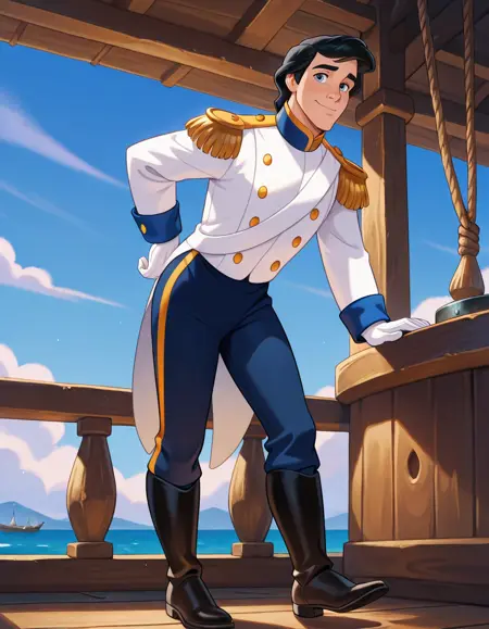| Trained Words | 1man, black hair, light-blue eyes, dimples,Copied! Eric_main_outfit, white shirt, three-quarter sleeves, red waistband, gray pants, black boots,Copied! Eric_military_uniform, dark blue military uniform, red shoulder straps, black leather belt, golden buckle, black shoes, red and blue collar, massive gold buttons, red embroidery,Copied! Eric_royal_outfit, white tailcoat, dark blue pants, gold epaulettes, white baldric, black boots, blue collar and cuffs, white gloves, gold embroidery, massive gold buttons,Copied! |