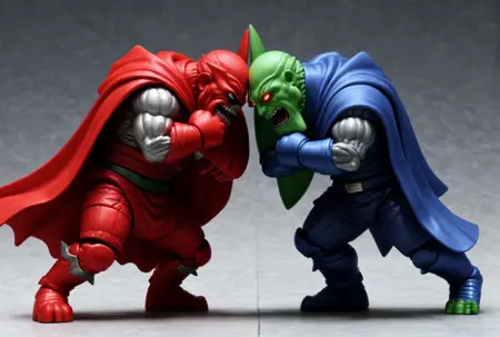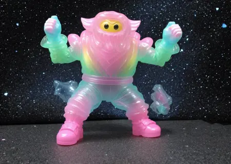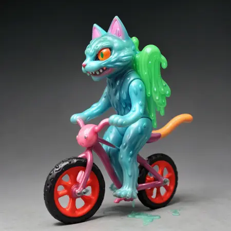 This LoRA model generates monster toys with a retro 70s-80s aesthetic, featuring bold colors and exaggerated proportions. The toys have a realistic texture, capturing every seam and material detail, making them look like actual collectible figures. The vibrant color schemes create strong visual contrasts, while each monster character is designed with unique details and a distinct personality, giving them a sculpted, hand-crafted feel.