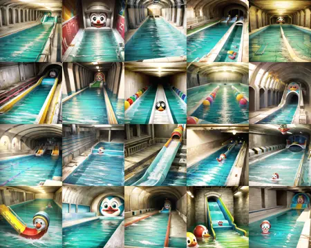 - 수영복을 입은 여성이 풀장에 서 있다 (2) 물속에 흰 수영복을 입은 여성 (1) 벽에 미술 작품이 있는 풀장에서 수영 중인 남성 (1) 수영복을 입고 물속에서 수영하는 여성 (1) 수영복을 입고 물속에서 수영하는 여성이 물속을 수영한다 (1) 화재호스와 화재호스가 있는 침수된 복도 (1) 샘물이 흐르는 풀장과 녹색 카펫 (1) 검은 수영복을 입고 풀장에서 뜨는 여성 (1) 벤치와 계단이 있는 침수된 지하철역 (1) 중앙에 화재호스가 있는 침수된 복도 (1) 계단이 있고 타일 벽이 있는 풀장 (1) 금속 난간이 있는 긴 풀장 (1) 파란 벽과 천장이 있는 풀장 (1) 스파이럴 계단이 있고 천장창이 있는 풀장 (1) 다양한 색의 물건들이 가득한 방 (1) 파란 바닥과 흰 벽이 있는 복도 (1) 의자와 의자가 있는 풀장 (1) 사다리와 문이 있는 어두운 방 (1) 세면대와 창문이 있는 욕실 (1) 남자가 수영하는 파란 풀장 (1) 금속 난간과 선풍기가 있는 작은 풀장 (1) 가운데 통로가 있는 풀장 (1) 타일 바닥이 있는 욕실에 있는 풀장 (1) 방 안의 파란 물이 있는 풀장 (1) 파란 물과 흰 벽이 있는 풀장 (1) 풀장과 벽이 있는 방 (1) 수영복을 입은 여성, 화장실에 앉아 있다 (1) 흰 모자를 쓴 남성이 수영하는 풀장 (1) 긴 파란 카펫이 있는 긴 복도 (1) 손 세정기와 거울이 늘어선 긴 복도 (1) 바닥에 물이 많은 큰 방 (1) 사다리와 물이 있는 풀장 (1) 천장창이 있는 풀장 (1) 건물 안에 긴 풀장에 앉아 있는 사람 (1) 녹색 기둥이 있는 큰 풀장 (1) 흰 변기와 파란 타일 바닥이 있는 작은 풀장 (1) 프리스비를 든 남성이 수영 중인 풀장 (1) 파란 모자를 쓴 남성이 수영하는 풀장 (1) 타일 바닥에 있는 스파이럴 계단이 있는 풀장 (1) 스파이럴 계단이 있는 방을 걷는 사람 (1) 물 아래로 도는 스파이럴 계단이 있는 풀장 (1) 풀장 아래에 남자가 수영하는 물내리개 (1) 계단이 있는 풀 위에 서 있는 남성 (1) 거대한 머리 모양이 있는 풀장에 있는 물내리개 (1) 수영장에 남자와 여자 조각상 (1) 워터파운틴이 있는 큰 풀장 (1) 파란 풀장에 보라색 슬라이드 (1) 보라색 팽창식 풀장과 보라색 팽창식 링 (1) 세면대와 욕조가 있는 욕실 (1) 사다리가 있는 풀장에 자물쇠가 있는 물내리개 (1) 천장에서 매달린 얼음조각이 있는 풀장에 물내리개 (1) 고양이가 있는 풀장에 자물쇠가 있는 물내리개 (1) 파란 풀장이 있는 물놀이 공원에 있는 물내리개 (1) 하늘 배경이 있는 풀장과 하늘 배경 (1) 유리 바닥과 손잡이가 있는 욕조 (1) 타일 벽에 있는 큰 파란 파이프 (1) 수영복을 입은 두 사람, 풀장에 서 있다 (1) 테이블과 벤치가 있는 방 (1) 벤치 줄이 있는 방 (1) 큰 파란 타일 풀장이 있는 풀장 (1) 안경을 낀 남성이 수영하는 풀장 (1) 흰 타일 벽과 파란 풀장이 있는 풀장 (1) 의자가 있는 풀장과 위에 조명이 있는 풀장 (1) 분홍색 팽창식 매트리스에 누워 있는 남성, 풀장 (1) 화장실과 빛나는 네온 사인으로 구성된 방 (1) 큰 유리 풀장이 있는 풀장 (1) 책장과 책장이 있는 침수된 복도 (1) 풀장에 떠 있는 사람들의 그룹 (1) 주변에 사람들이 서 있는 풀장에서 수영하는 남성 (1) 창문 줄이 있는 긴 복도 (1) 통로에서 사람의 반사 (1) 타일 바닥이 있는 풀장의 사진 (1) 녹색 조명이 있는 긴 복도 (1) 빨강과 노랑의 부력 고리가 있는 풀장 (1) 긴 물줄기의 긴 수영장 (1) 노란색과 흰색 바닥이 있는 지하철역 (1) 길고 좁은 풀장, 흰 커튼 (1) 커튼과 창틀이 있는 창문 (1) 곡선 풀과 타일 벽이 있는 욕실 (1) 세 개의 발기 도구가 있는 풀장 (1) 침수된 쇼핑몰에서 수영하는 상어 무리 (1) 주차장에 잠긴 차 (1) 작은 풀에 작은 보트 (1) 전자계기 'TV'라고 적힌 안내판이 있는 침수된 지하철역 (1) 건물의 반사가 있는 풀장 (1) 물과 나무 줄이 있는 풀장 (1) 색다른 튜브가 있는 풀장에 있는 물내리개 (1) 파이프에 매달린 클로우 마스크 (1) 가짜 마스크가 풀장에 물을 쏟아붓는 모습 (1) 전원이 켜진 후크 장식이 있는 세면대가 있는 다채로운 타일 욕실 (1) 색다른 터널 위에 클로우 마스크 (1) 다채로운 튜브가 있는 놀이터에서 긴 슬라이드 (1) 미소가 그려진 물내리개 (1) 풀장과 다채로운 화분이 있는 터널 (1) 양쪽 벽에 클로우 머리가 있는 터널 (1) 다채로운 튜브가 있는 슬라이드 (1) 물내리개 옆 벽에 있는 클로우 얼굴 (1) 서핑보드를 타고 있는 사람이 있는 풀장의 물내리개 (1) 클로우 얼굴이 그려진 물내리개 (1) 파란색과 흰색 튜브가 있는 물내리개 (1) 슬라이드 위에 있는 클로우 조각상 (1) 물내리개 위에 선 클로우 조각상 (1) 장난감 인형이 있는 풀장에 있는 물내리개 (1) 물내리개가 있는 풀장에 장난감 클로우 (1) 튜브가 나오는 물내리개 (1) 물이 쏟아져 나오는 풀장 (1)